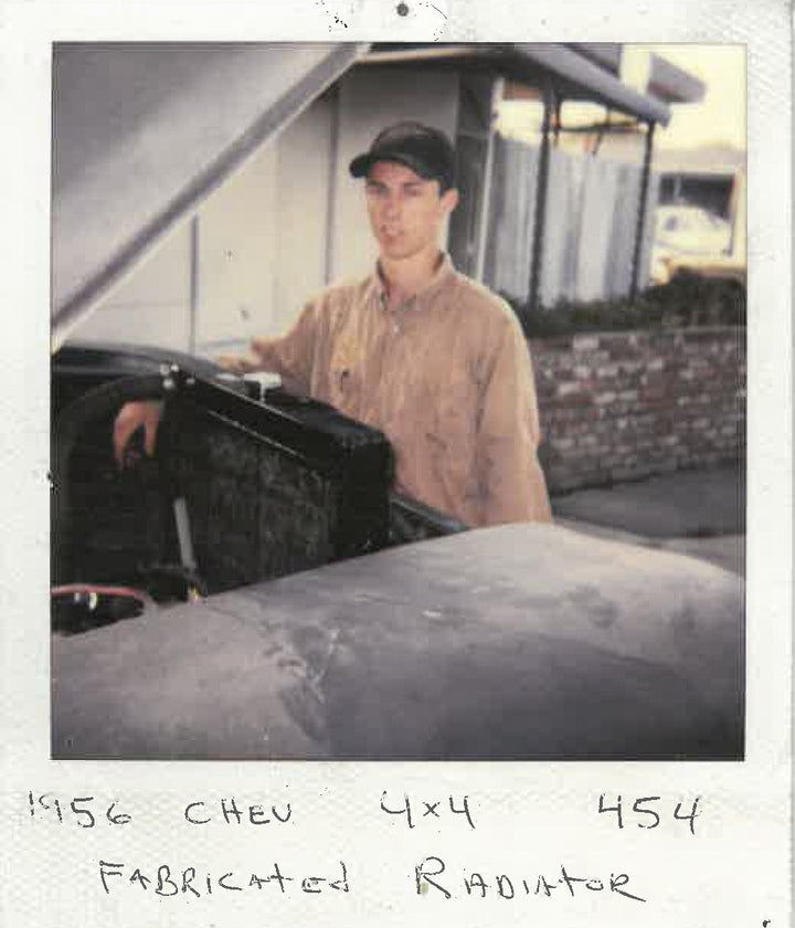 Ryan Garrett working on installing a radiator into a 1956 Chevy.